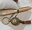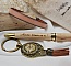 ► Originalnyckelring i åldrad mässing, med en förstoringsglascabochon med en beigefärgad fickurskiva i design, på en stjärnfattning, med en ljusbrun mocka-pompom och en hjärtformad charm som hänge. Höjd: 10 cm, bredd: 3,5 cm.