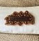 Broche en perles brodées main coloris cuivre, laiton et doré, avec le message sur cuir marron gravé : " Just breathe ♥".