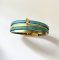 Une manchette femme en cuir aux couleurs turquoise et doré, et composée de 4 lacets en cuir .